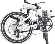 | 主仕様: Frame : 20" AR Series, Dalloy Sonus Aluminum, ViceGrip & Re-Bar technologies Fork : Dahon SlipStream, Dalloy aluminum Handlepost/Stem : Radius onepiece, Outside folding, H:330mm, 8deg. Handlebar : Dahon Comp, flat, double butted 6061, 540mm, φ25.4mm Grips/Bartape : XHH, Lock on Function Saddle : Dahon Litebeam Saddle Seatpost : Dahon Aluminum Seatpost, 33.9×580mm Brakes : Dahon SpeedStop V brakes Brake Levers : Promax Alloy Levers Hub/F : Dahon Neutron, 20H Hub/R : Dahon Comp, 28H Rims : Dahon Comp Tires : Dahon Special Edition, KENDA Ksmart, 20"×1.35, F/ V Crankset : Prowheel, Forged alloy road type, 53/39T Derailleur/F : Shimano Tiagra, FD-4700, 2spd Derailleur/R : Shimano Tiagra, RD-4700, 10spd Shifter : Shimano Tiagra, Rapidfire shifter, SL-4700 Cassette : Shimano CS-HG500-10, 11-25T Pedals : Suntour Foiding, alloy body Kickstand : Aluminum Clip System : Magnetix system Others : Base for Landing Gear 折りたたみサイズ 約W79×H65×D38cmcm(写真) Detail(写真) ![]() |