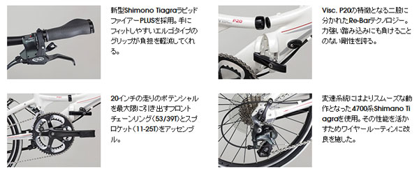 商品名:Visc.P20 20-Speed カラー: @アイスホワイト Aマンゴーオレンジ Bオブシディアンブラック size:20インチ 基本重量: 11.0Kg 折りたたみサイズ:W79×H65×D38cm 適応身長:142〜193cm saddle to Pedal: Min;680mm Max;950mm |